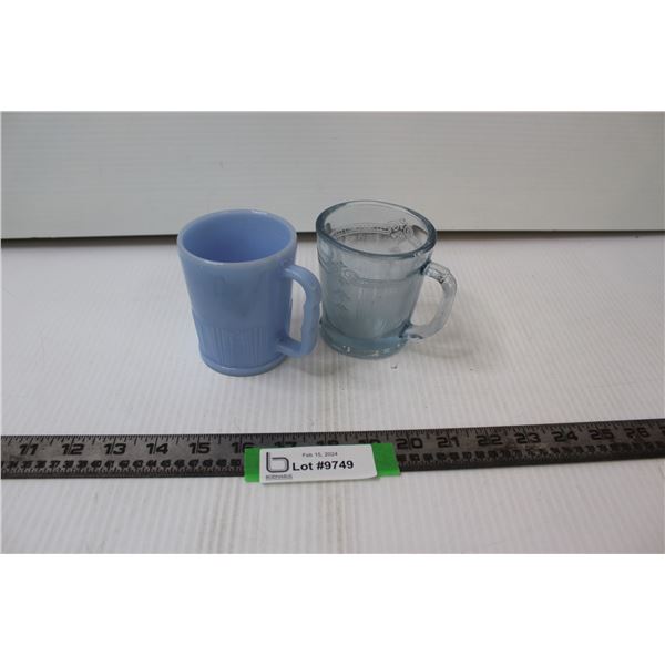 Pyrex Delphite Mug, Fire King Philbe Blue Glass Mug
