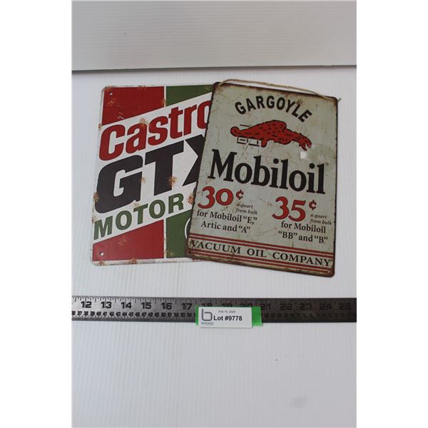 (2) Metal Reproduction Signs - Mobiloil, Castrol