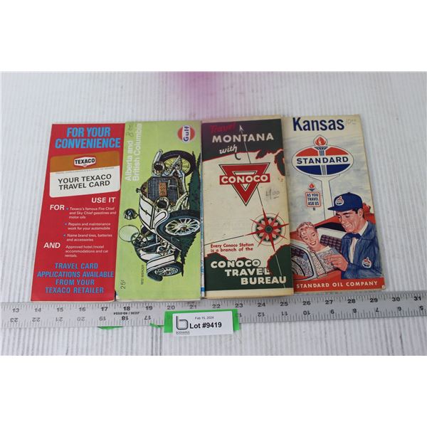 (4) Gas Station Maps - Gulf, Texaco, Standard, Conoco