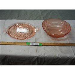 (2) PINK GLASS PIECES (BOWL HAS SMALL CHIPS)