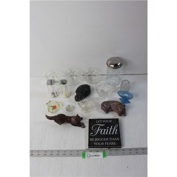 (4) Glass Cups, Salt and Pepper Shakers, Figurines and Misc.6221 - (4) Glass Cups, Salt and Pepper Shakers, Figurines and Misc.
