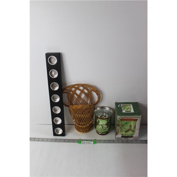 (2) Candle Holders and Wicker Wall Hanging6229 - (2) Candle Holders and Wicker Wall Hanging