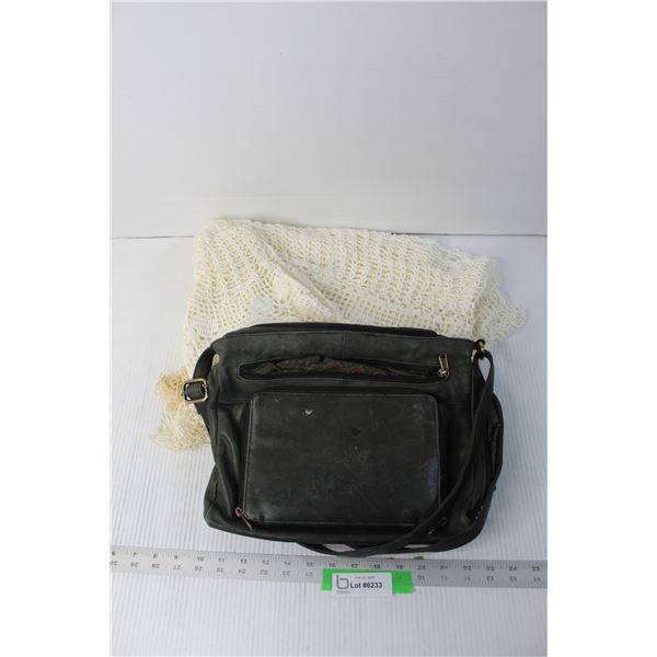 Purse and Handmade Round Crocheted Table Cloth6233 - Purse and Handmade Round Crocheted Table Cloth