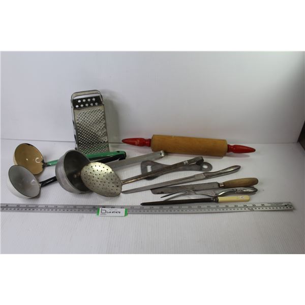 Vintage Rolling Pin - Water Dippers - Grater - Misc. Kitchen Ware Items