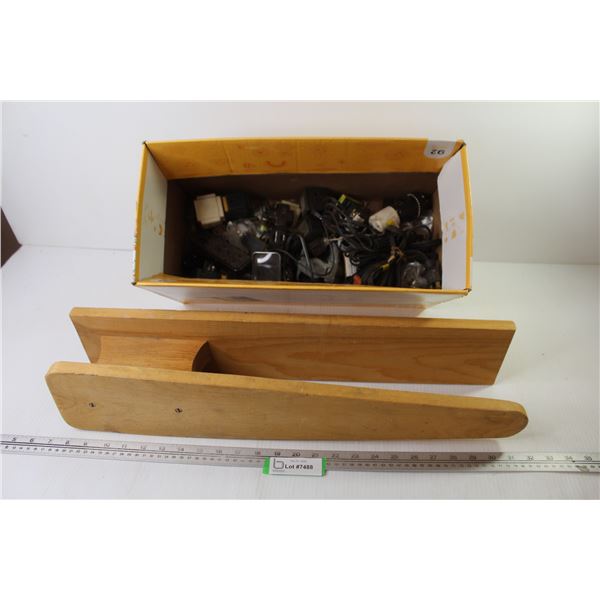 Box of Misc. Electrical Item s - Plugs - Cords - Sleeve Ironing Board