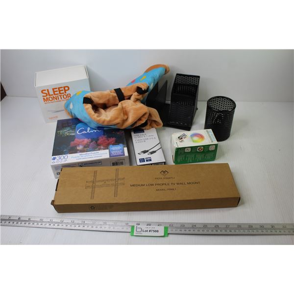Inflatable Neck Support - Office Pen & Letter Holder - Medium Low TV Wall Mount - Calm 300 Piece Puzzle (NIB) - USB Mini Cable - Led Light Bulb ...