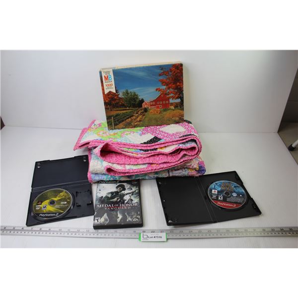 Quilt (40" x 59") - 1000 Piece Puzzle (unopened) - (3) PlayStation Games - Lord of The Rings - Medal of Honor - Colosseum
