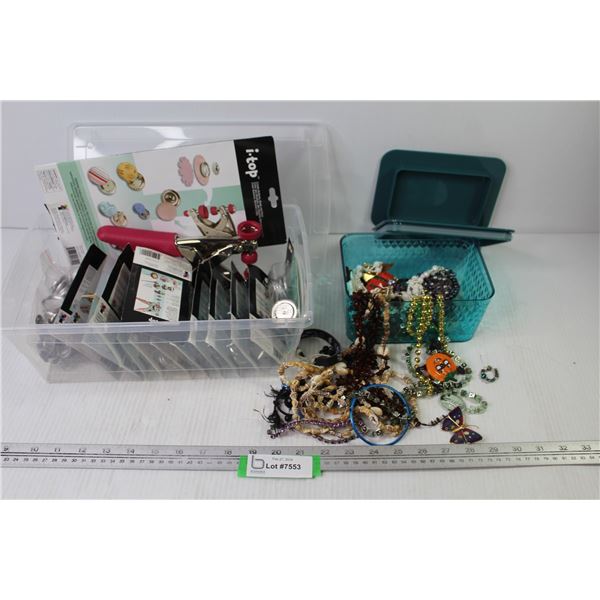 I-top Brad Presser w/Container of Assorted Brads - Container of Costume Jewelry