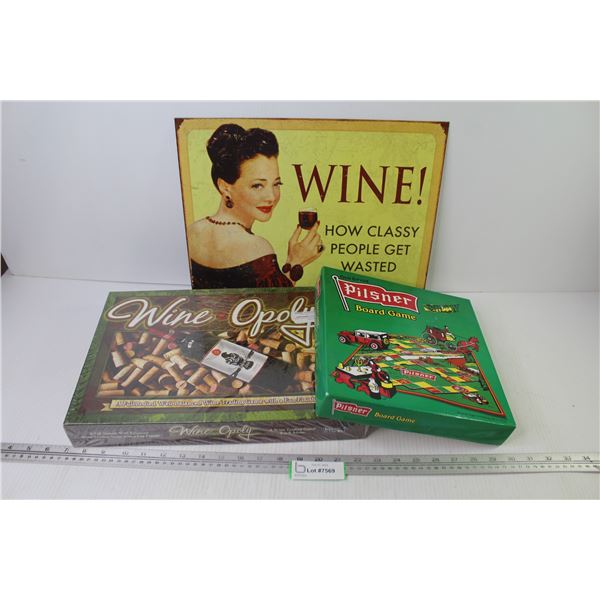 Tin Wine Sign (16" x 12 1/2") - Wine-Opoly Game (unopened) - Pilsner Board Game