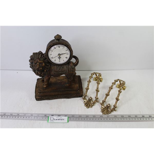 Resin Lion Clock (untested - (2) Brass Curtain Tiebacks