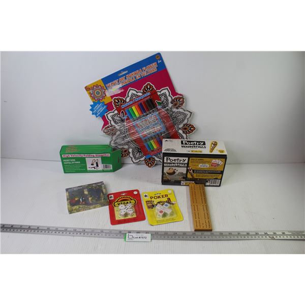 Poetry for Neanderthals - Sling Shot in Box - Velvet Art Picture - Wine Playing Cards - Vegas Dice - Poker Dice - Cribbage Board