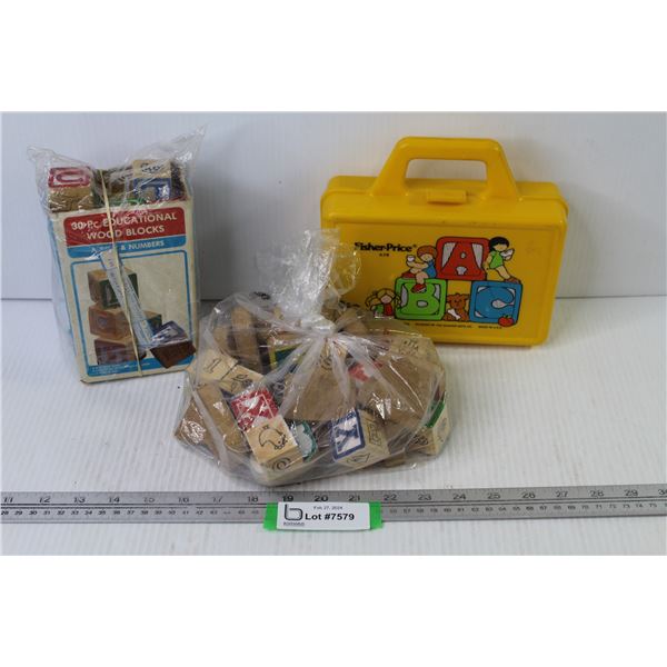Vintage Fisher - Price Wooden Blocks in Case - Package of Wooden Blocks - Bag of Wooden Blocks