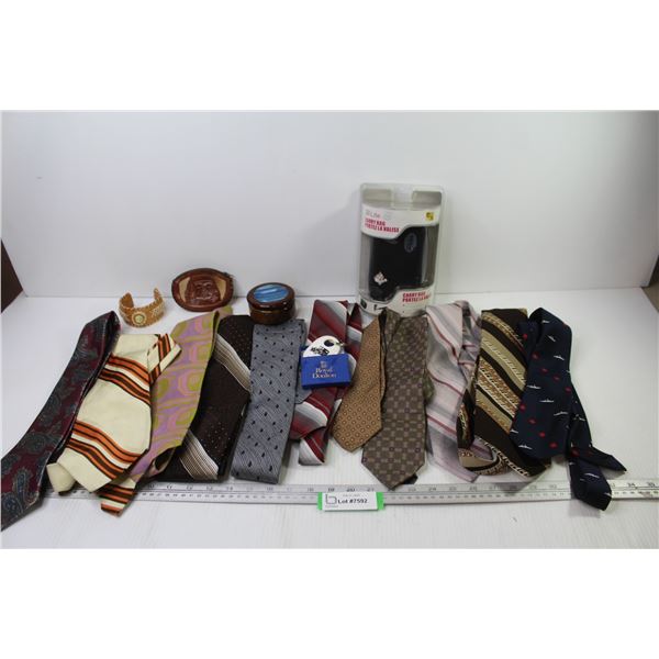 Lite Carry Bag - 11) Men's Ties - Royal Dolton 1924 Ceramic Key Chain - Wooden Trinket Box - Leather Coin Purse - Leather Wrist Band