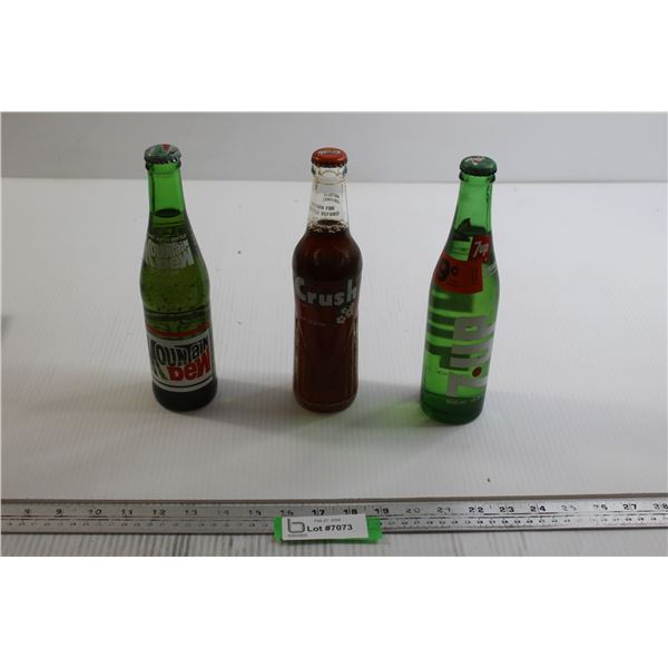(3) Sealed Pop Bottles - Mountain Dew, Crush, 7Up