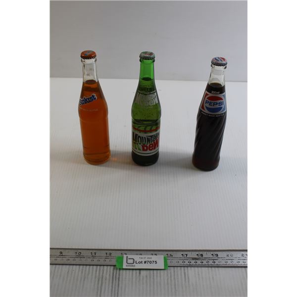 (3) Sealed Pop Bottles - Mountain Dew, Pepsi, Sunkist