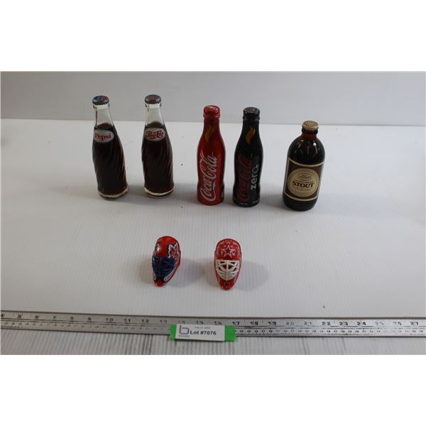 (5) Sealed Pop/Beer Bottles, (2) Hockey Bottle Openers