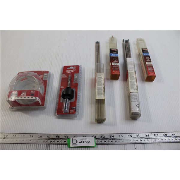 Milwaukee Hole Dozer and Hole Saw Arbor, (2) Packs Welding Electrodes