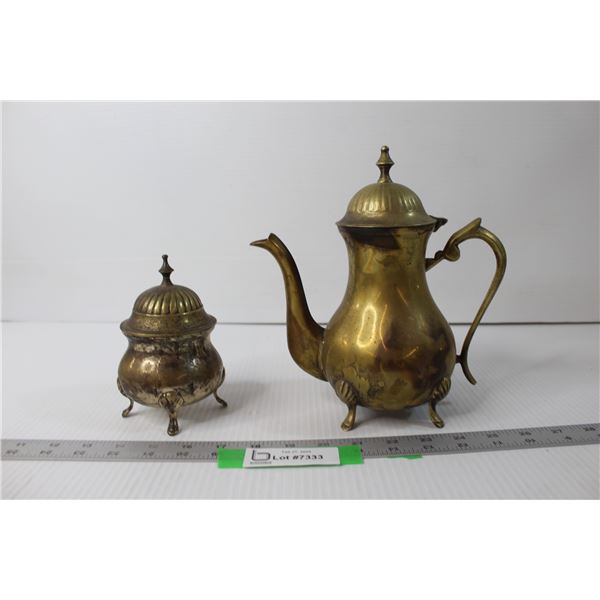 Brass Coffee Pot and Sugar Bowl7333 - Brass Coffee Pot and Sugar Bowl