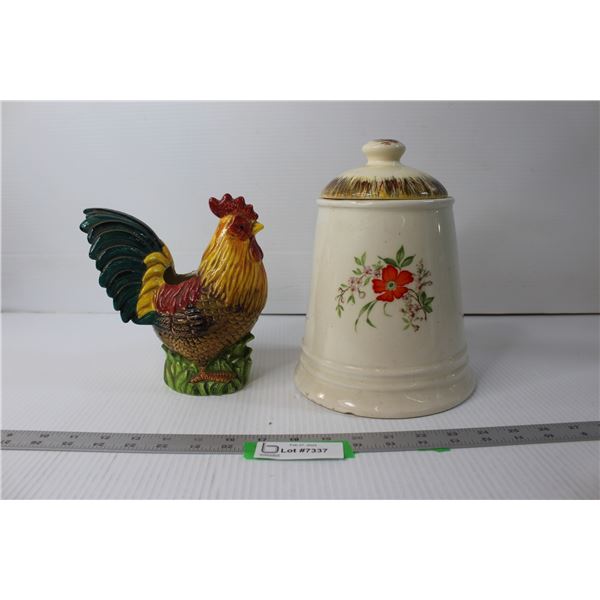 Ceramic Cannister and Ceramic Rooster Ornament7337 - Ceramic Cannister and Ceramic Rooster Ornament