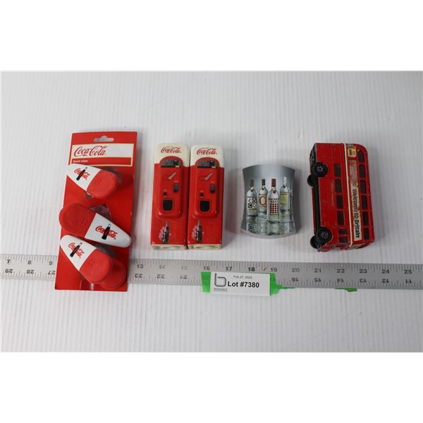 Coca Cola Salt and Pepper Shakers, Bag Clips and Misc.