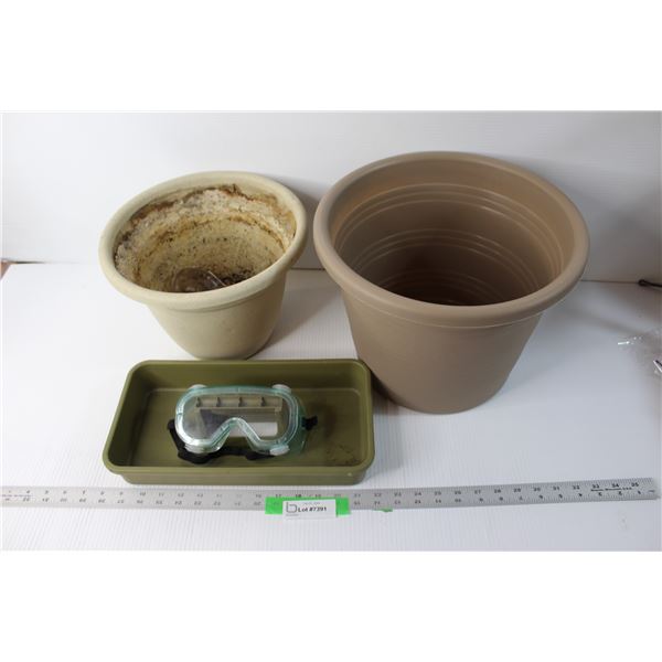 (2) Planters, Toolbox Organizer and Safety Goggles