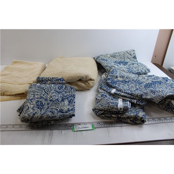 (2) Pieces Drapery Fabric - 3 yards, (8) Pieces Decorating Fabric with Matching Tablecloth