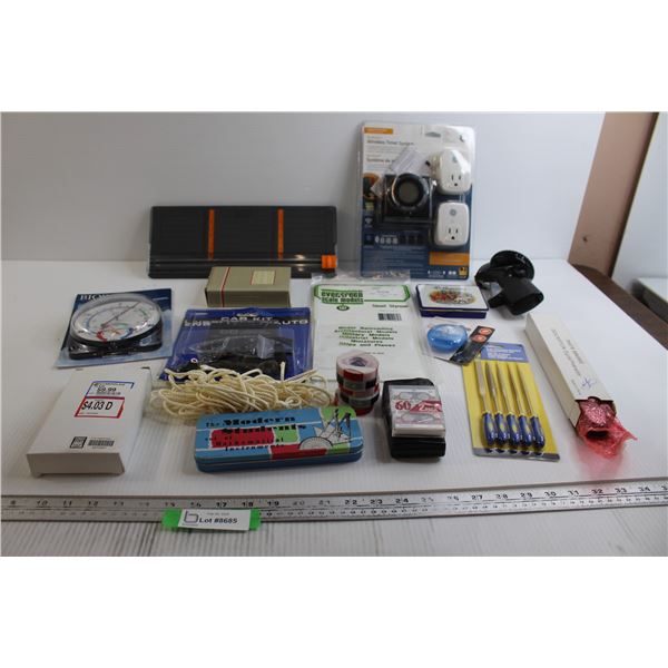 Paper Cutter, Diamond File Set, Thermometer Hygrometer, Misc.