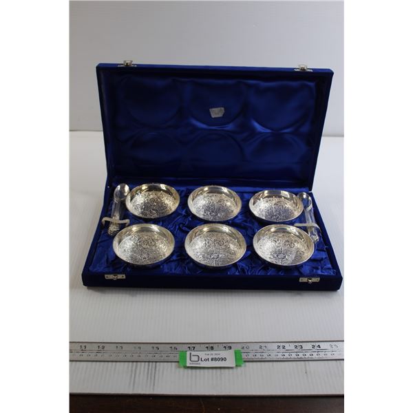 (6) Silverplated Bowls and (6) Silverplated Spoons - All Sealed Except (1) Bowl8090 - (6) Silverplated Bowls and (6) Silverplated Spoons - All Sealed Except (1) Bowl