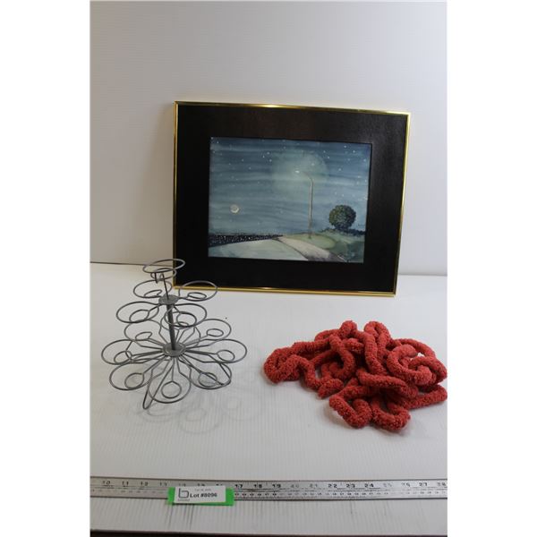 Cupcake Holder, Crochet String, Framed Watercolour - 20 1/4" x 16"
