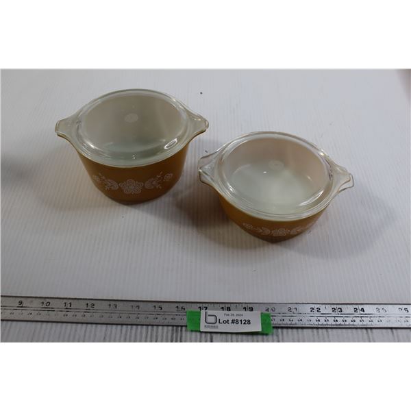 (2) Butterfly Gold Pyrex Dishes - Some Chips
