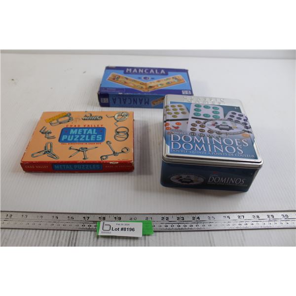 (3) Games - Metal Puzzles, Mancala, Dominoes