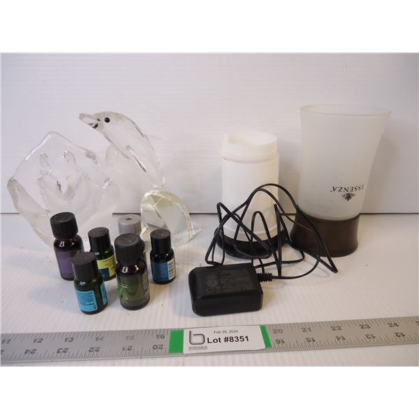 (2) Ornaments (1 piece chipped off, can be glued on) (2) scented oil and (6) assorted scented oils8351 - (2) Ornaments (1 piece chipped off, can be glued on) (2) scented oil and (6) assorted scented oils