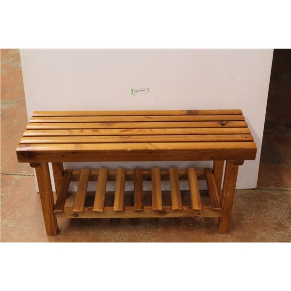 Wooden Bench (paper stuck on it - 36" w x 12 1/2"d x 17 3/4"h)