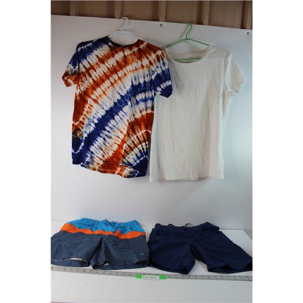 Tie-Dye Medium Shirt, White XL Shirt, (2) Men's Size Small Swimming Shorts