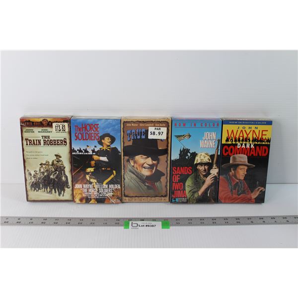 (5) John Wayne VHS - NIB - True Grit, Train Robbers, Misc.8387 - (5) John Wayne VHS - NIB - True Grit, Train Robbers, Misc.