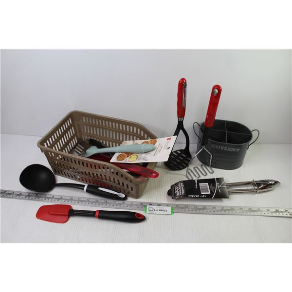Basket of Kitchen Ware Items - Metal Cutlery Holder8422 - Basket of Kitchen Ware Items - Metal Cutlery Holder