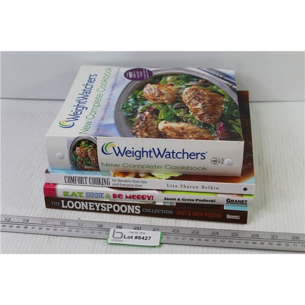 (4) Food Recipe Cook Books - Weight Watchers Complete Cook Book - Eat Shrink & Be Merry - Looney Spoons - Comfort Cooking