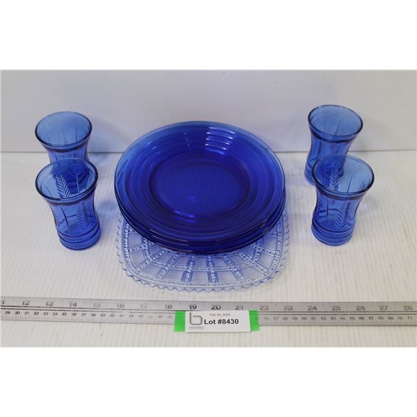 (5) Blue Glass Plates - (4) Blue Glasses8430 - (5) Blue Glass Plates - (4) Blue Glasses