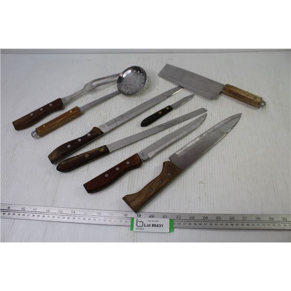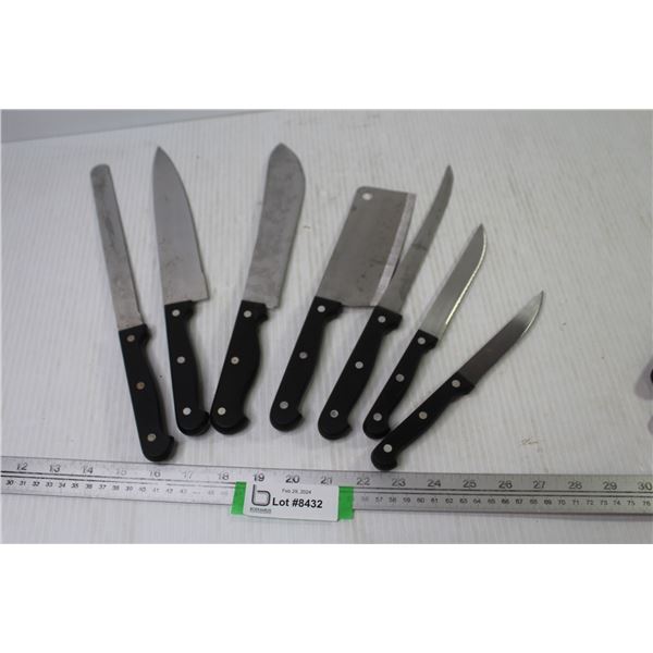 (6) Plastic Knives & Meat Cleaver8432 - (6) Plastic Knives & Meat Cleaver