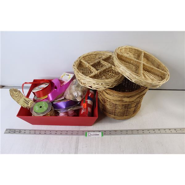 2604 - Ribbons, Protractors, Craft Supplies, Corks, Baskets, etc.Bodnarus Auctioneering & Real Estate