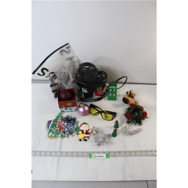 2608 - Cake Tin, Kitchen Utensils, Saskatchewan Mug, (2) Ceramic Baking Dishes, Ski Goggles, etc.Bodnarus Auctioneering & Real Estate