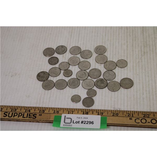 (17) Canadian Quarters, (2) Nickels, Dime; 1970s-2000s Assorted American Coins - Consignor Says American Nickels are Rare