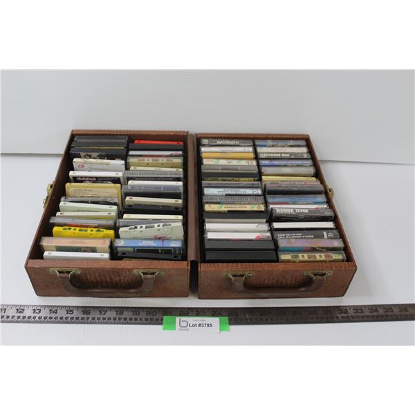 50+ Cassette Tapes in Holder w/Handles: Kiss, Nazareth, Fleetwood Mac, Misc.