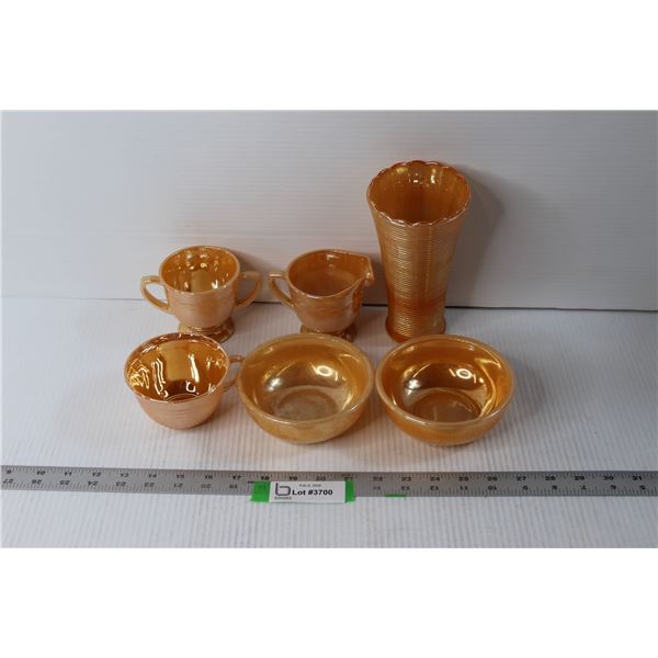 Peach Luster Items - Cream and Sugar, Cup, Bowls, and Vase