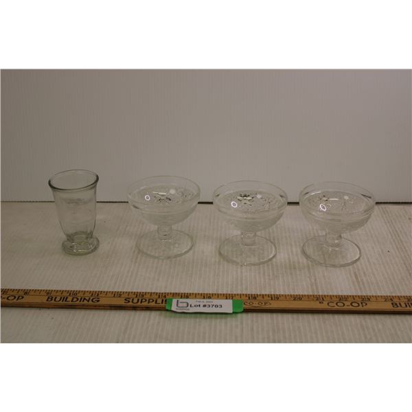 (3) Vintage Dessert Bowls - Sandwich Pattern - Vintage Juice Glass
