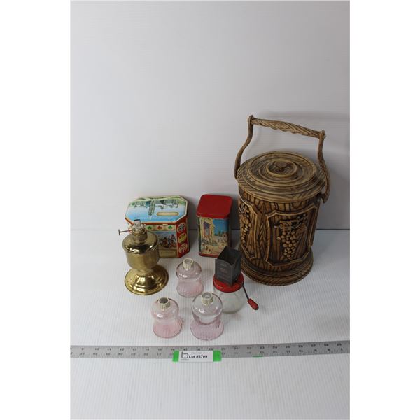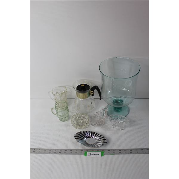 Corning Ware Gold Atomic Burst Coffee Pot, Glass Vase, Pineapple Pitcher and Misc.