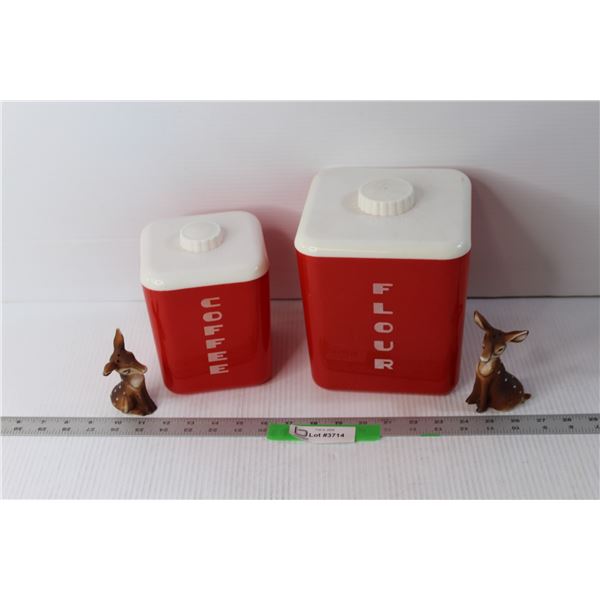 Vintage Lustro Ware Flour and Coffee Canisters and Salt and Pepper Shakers