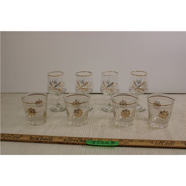 (4) Vintage Atomic Pinwheel and (4) Vintage Peacock Feather Liqueur Glasses