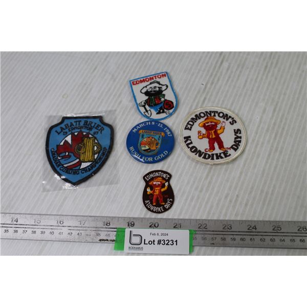 Edmonton Klondike Days Labatt Brier - Lot of (4) Embroidered Crests Plus a Labatt Brier Metal Button