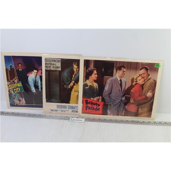 Lot of Three Vintage Movie Lobby Cards From 1950 - "Beauty on Parade", "The Sleeping City" Starring